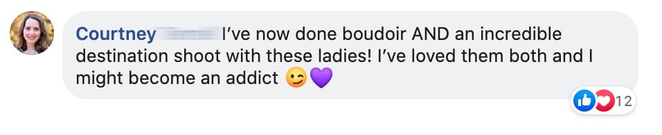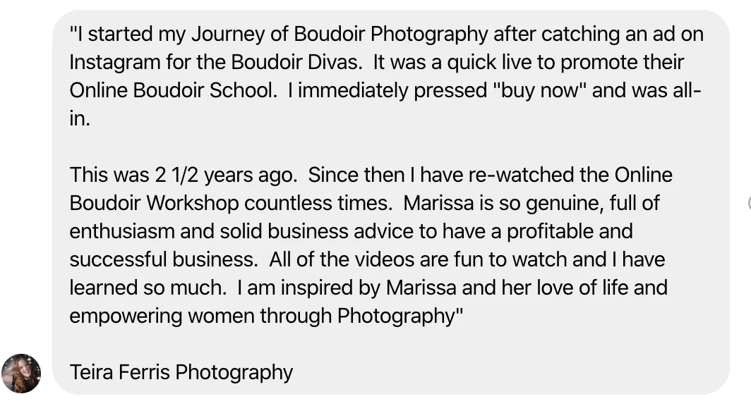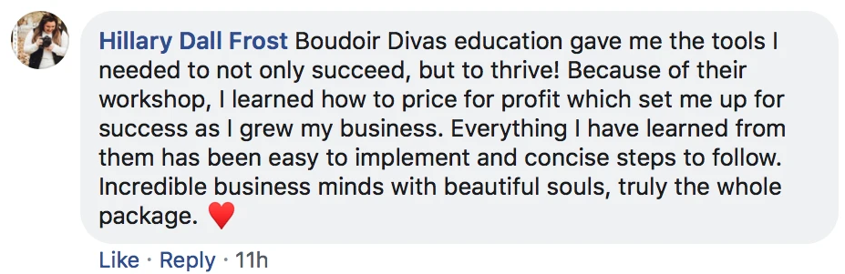 I couldn't have made this woman feel this with my Boudoir Diva training !! I am forever grateful that I can make this kind of difference in women's lives. Thank you from me and all the women that will come through my studio! You all touching so many lives with your